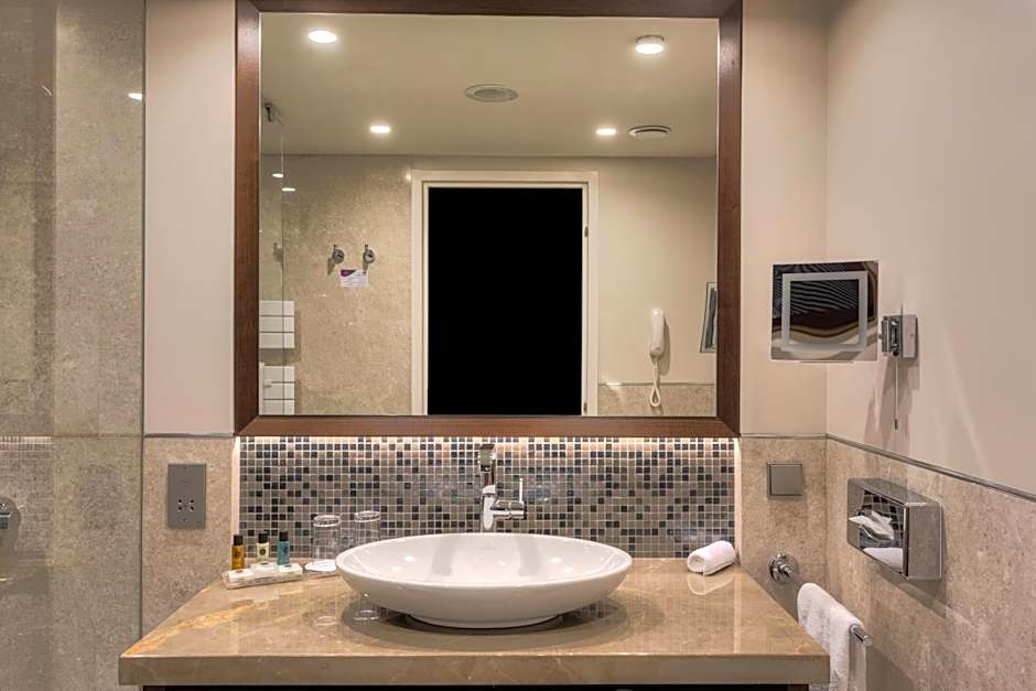 This spacious, air-conditioned suite consists of a separate living room and offers access to the Club Lounge. Amenities include 2 full HD LED TV with HDMI and VGA connection, bedside 3in1 mobile device charger, an alarm clock, a Bluetooth speaker, and an espresso machine. The bathroom comes with both a walk-in shower and a bathtub, bathrobes and free toiletries.